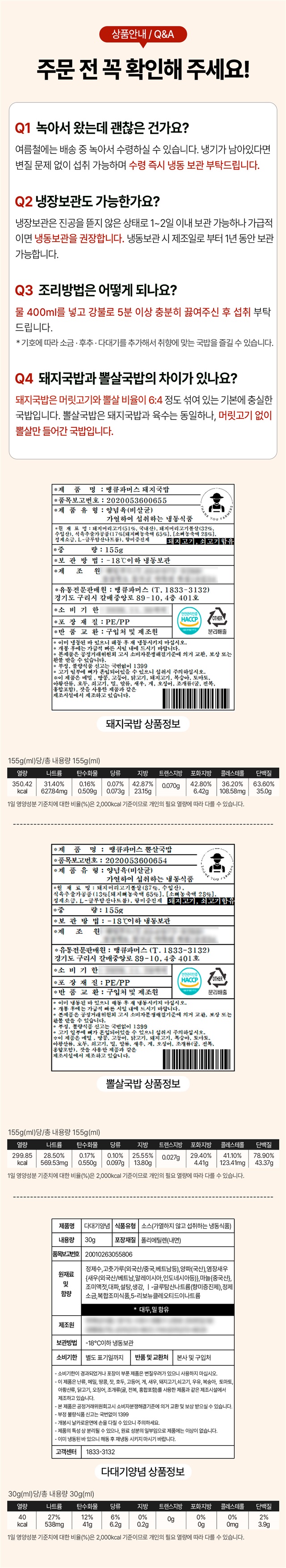 | 1-9. 소비자 안전을 위한 주의사항 (「식품 등의 표시ㆍ광고에 관한 법률 시행규칙」 제5조 및 [별표 2]에 따른 표시사항을 말함) | |