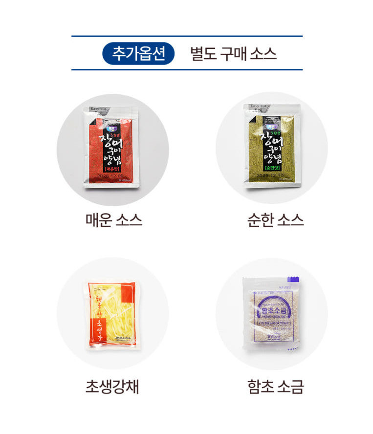 ※ 양념구이로 드실 경우 장어를 굽기 전 바르지 마시고 완전히 다 구워진 장어에 양념을 발라 약한 불에 타지 않을 정도로 조금 더 구워드시기 바랍니다.
