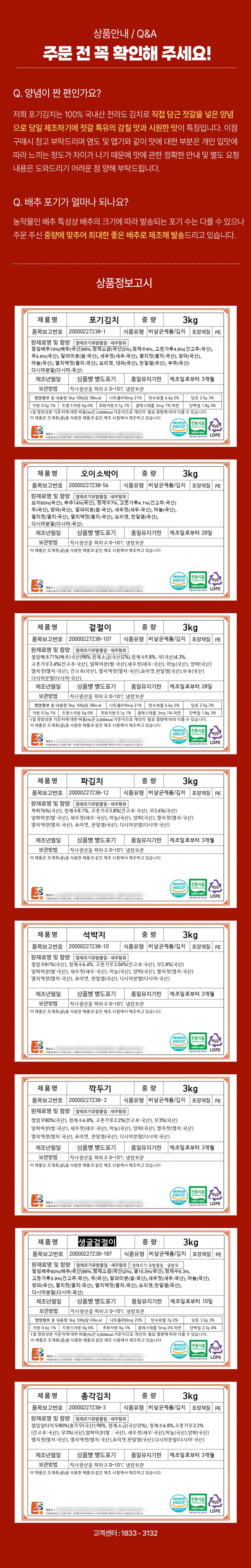 | 1-1. 제품명 | 김치 |