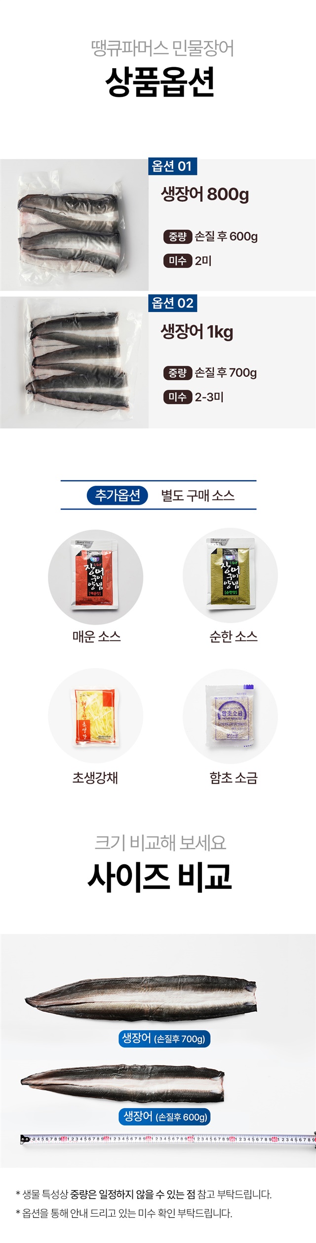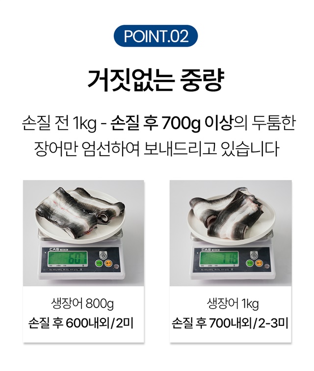 2. 포장단위별 내용물의 용량(중량), 수량, 크기 | 초벌전 1kg 초벌된 장어 500g 내외 |