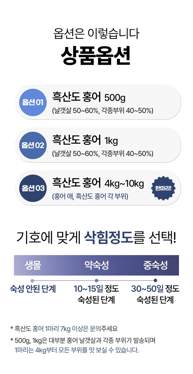 | 7. 상품구성 | 홍어 500g, 1kg |