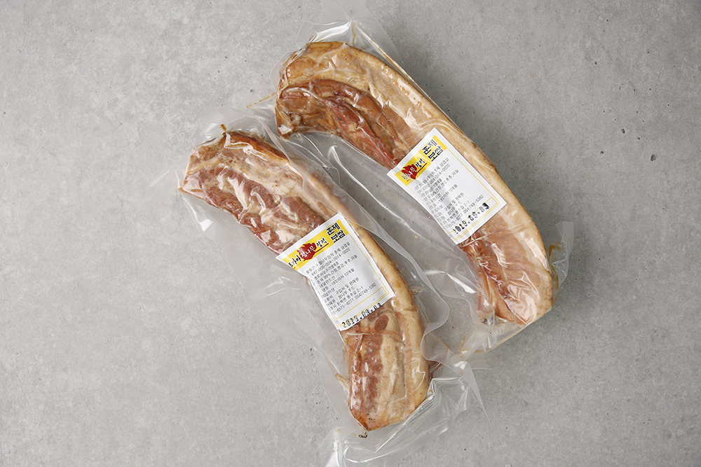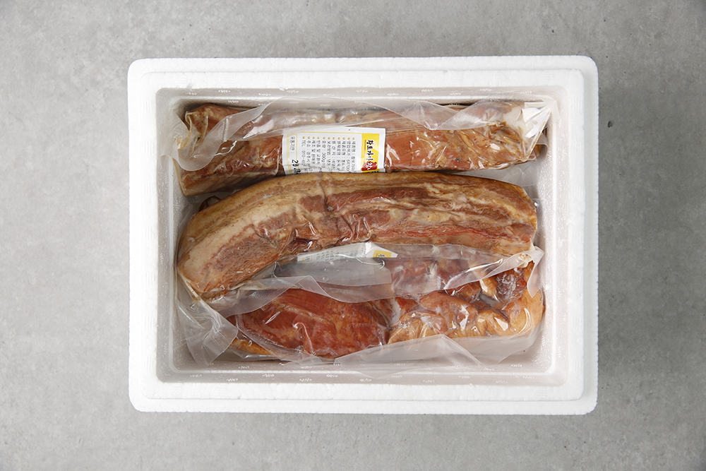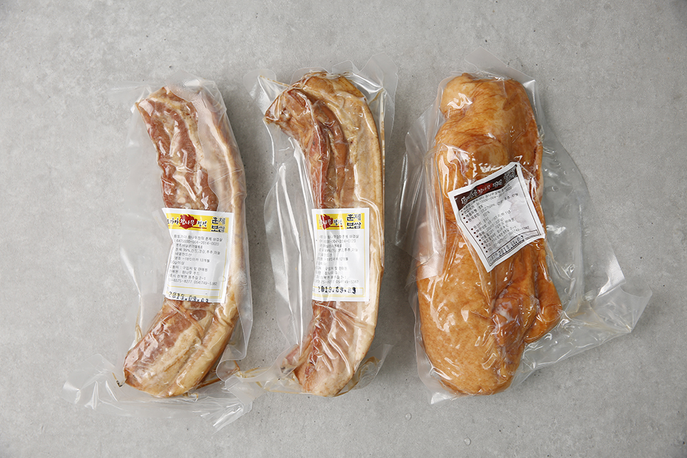 약 6시간 훈연하여 노르스름하고 쫄깃한 통 삼겹살은 진공포장하여 안전하게 배송 됩니다.