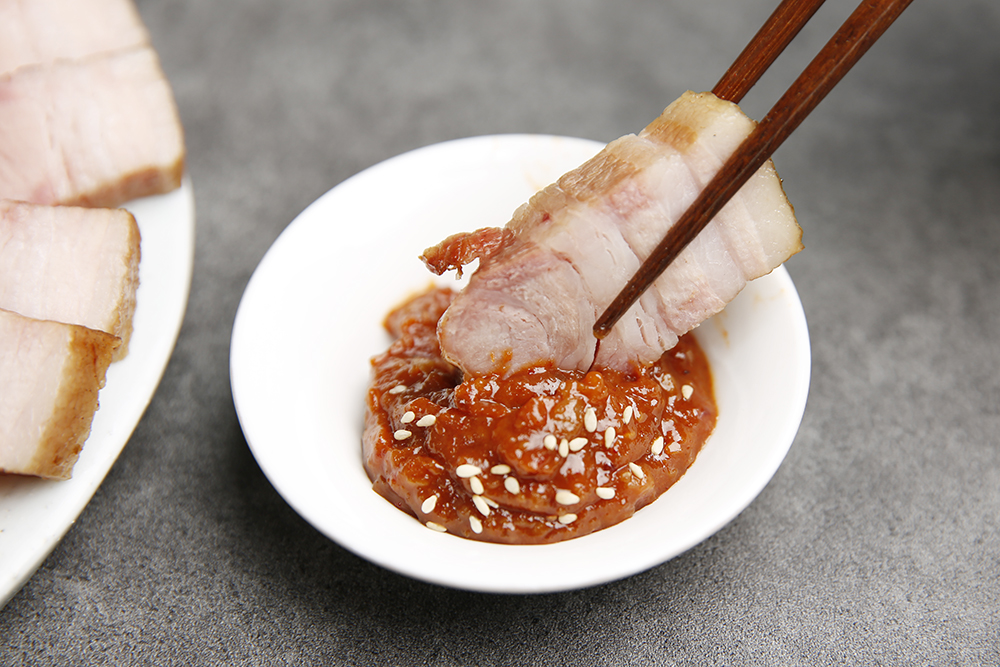 쌈장 콕! 마늘소스 콕! 가정에서도 맛있는 훈제 통 삼겹살, 훈제오리를 간단하게 드셔보세요!