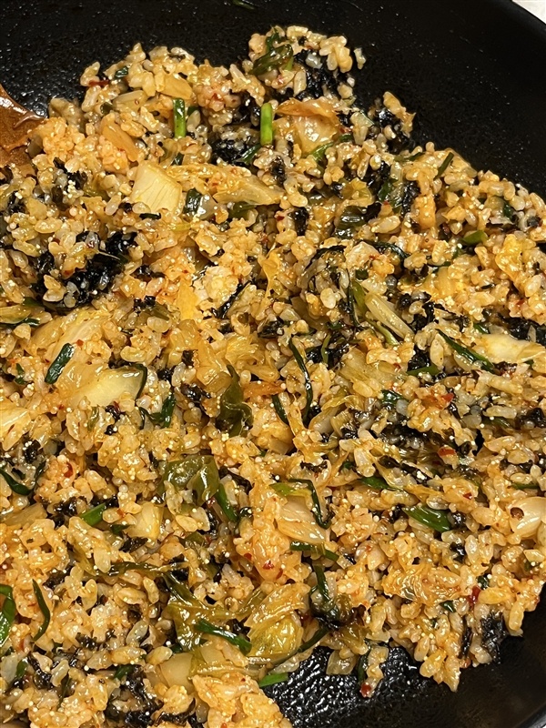 프라이팬에 잘 펴서 중불로 서서히 익혀 먹기